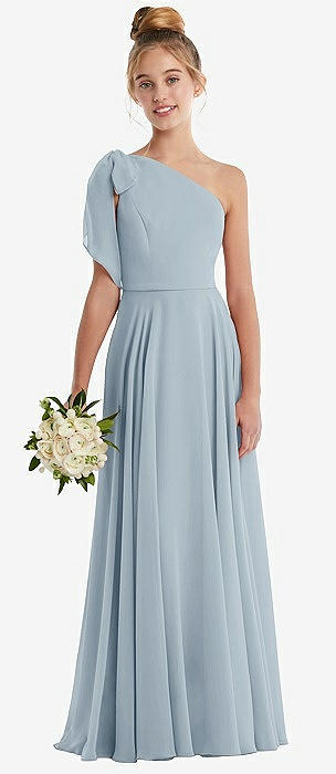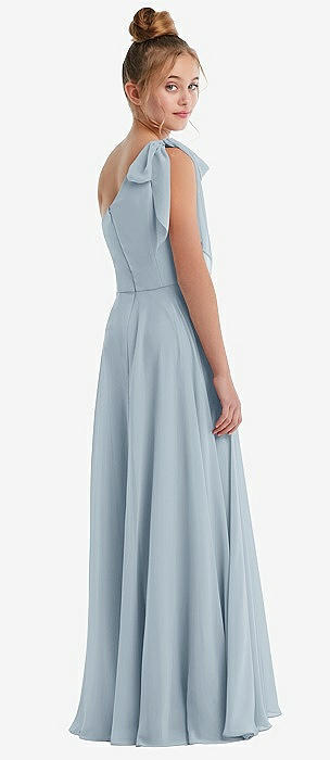 One-Shoulder Scarf Bow Chiffon Junior Bridesmaid Dress in mist