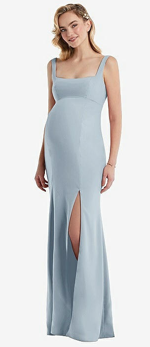 Wide Strap Square Neck Maternity Trumpet Gown in mist