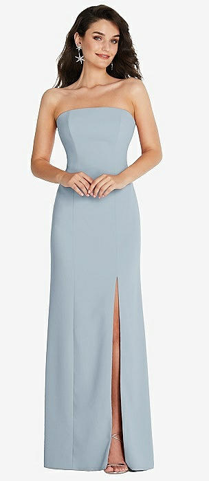 Strapless Scoop Back Maxi Dress with Front Slit in mist