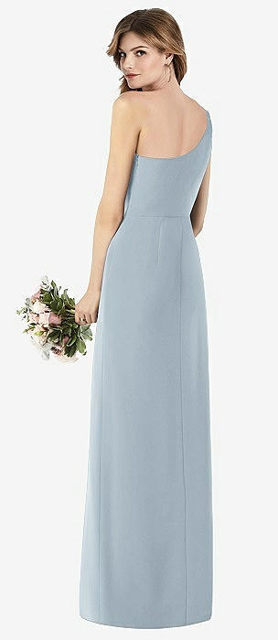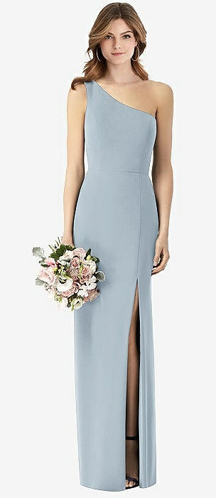 One-Shoulder Crepe Trumpet Gown with Front Slit in mist