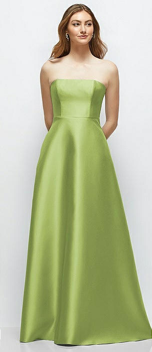 Strapless Satin Drop Waist Gown with Full Skirt in mojito
