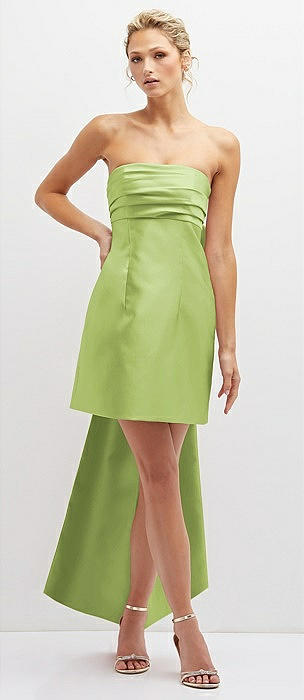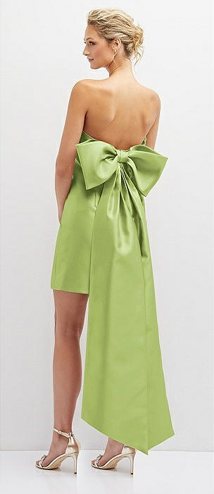 Strapless Satin Column Mini Dress with Oversized Bow in mojito