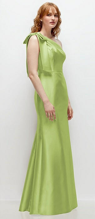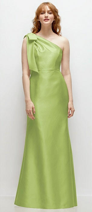 Bow One-Shoulder Satin Trumpet Gown in mojito