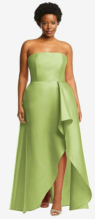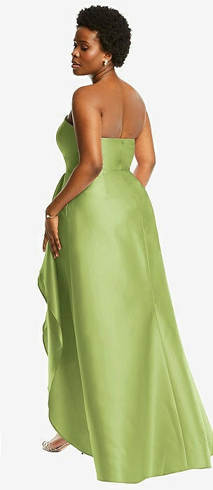 Strapless Satin High Low Dress with Pockets in mojito