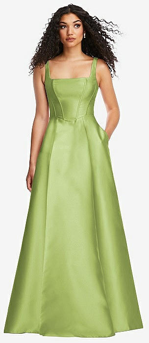 Boned Corset Closed-Back Satin Gown with Full Skirt and Pockets in mojito