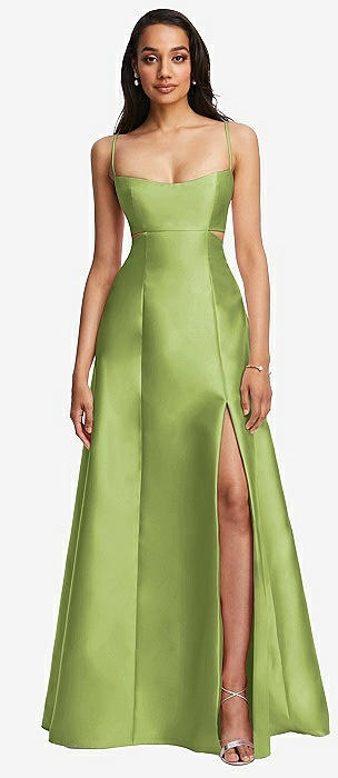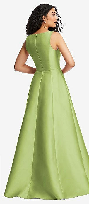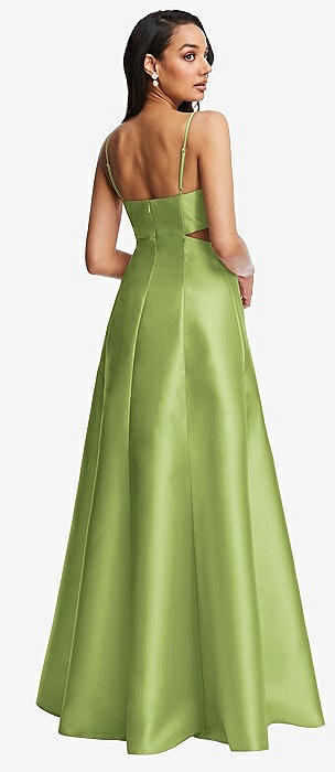 Open Neckline Cutout Satin Twill A-Line Gown with Pockets in mojito