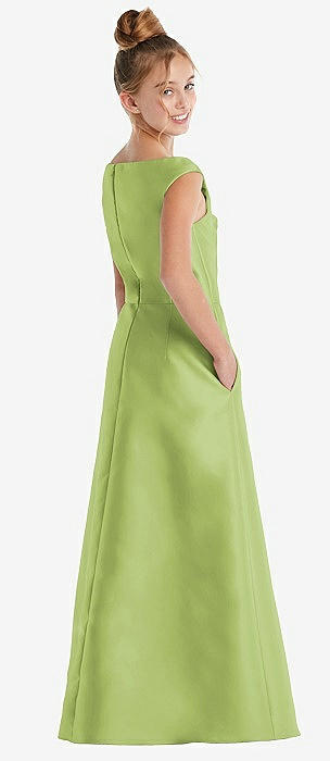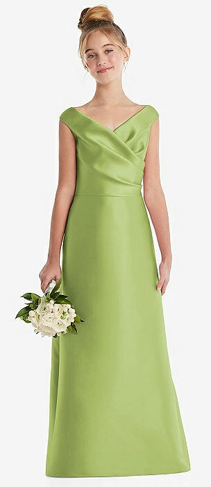 Off-the-Shoulder Draped Wrap Satin Junior Bridesmaid Dress in mojito