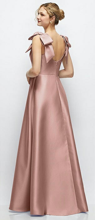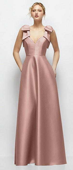 Deep V-Neck Satin Ball Gown with Shoulder Bows in neu nude