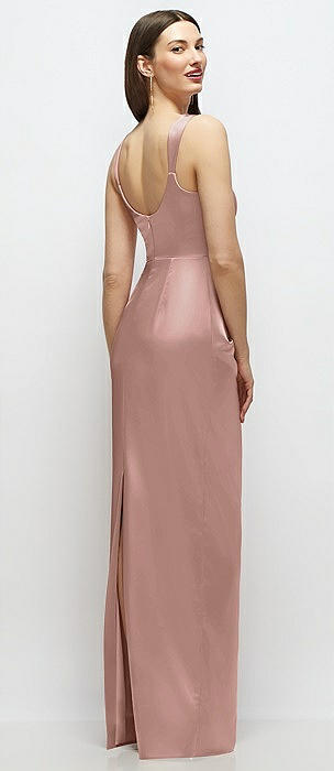 Scoop Neck Draped Column Stretch Satin Maxi Dress in neu nude
