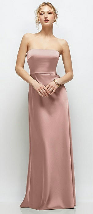 Strapless A-Line Stretch Satin Maxi Dress in neu nude
