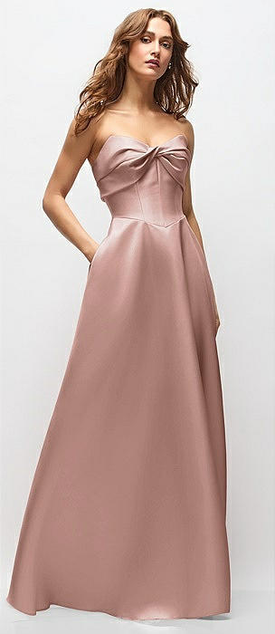 Strapless Twist Cuff Neck Satin Maxi Dress with Basque-Waist & Full Skirt in neu nude