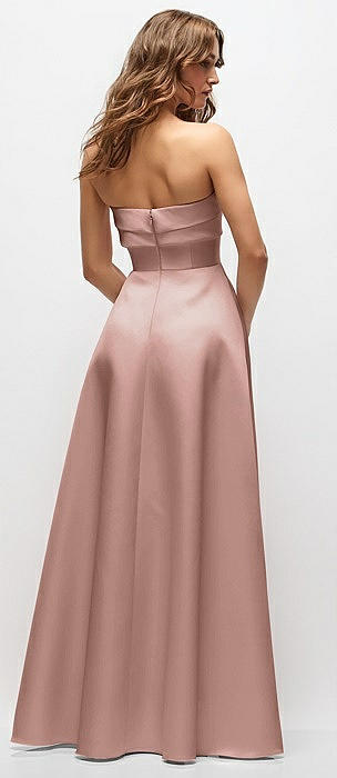 Strapless Asymmetrical Draped Satin Column Maxi Dress in neu nude