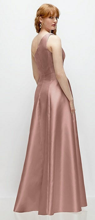 Bow One-Shoulder Full A-Line Satin Maxi Dress in neu nude