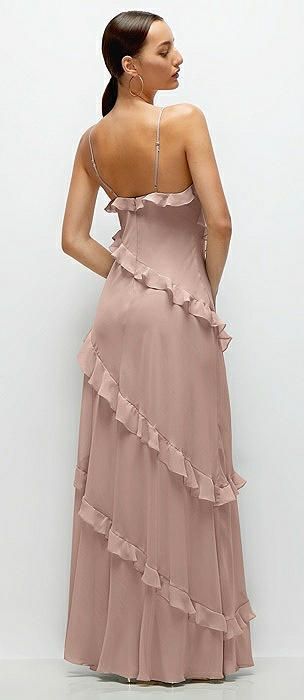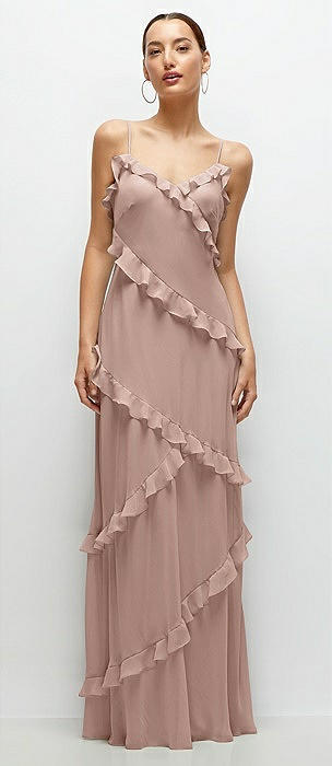 Asymmetrical Ruffle Chiffon Bias Slip Maxi Dress in neu nude