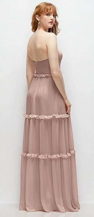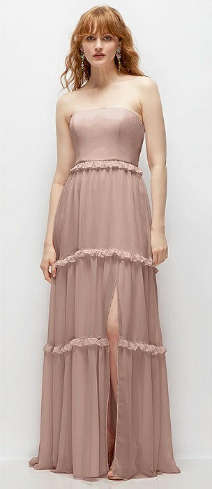Strapless Chiffon Maxi Dress with Tiered Micro Ruffle Full Skirt in neu nude