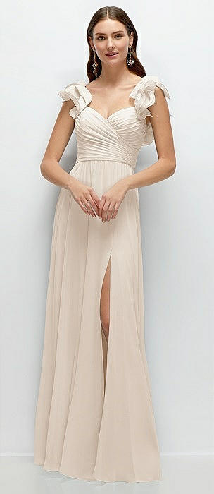 Dramatic Ruffle Edge Strap Chiffon Maxi Dress in oat