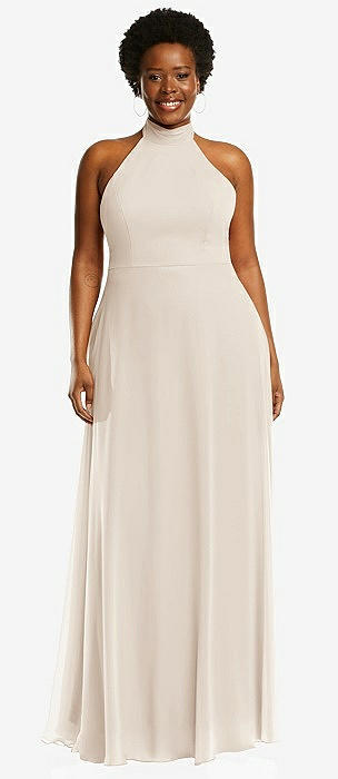 High Neck Halter Backless Maxi Dress in oat