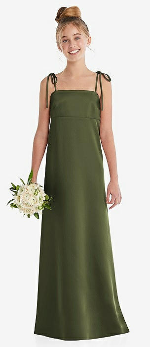 Tie Shoulder Empire Waist Junior Bridesmaid Dress in olive green