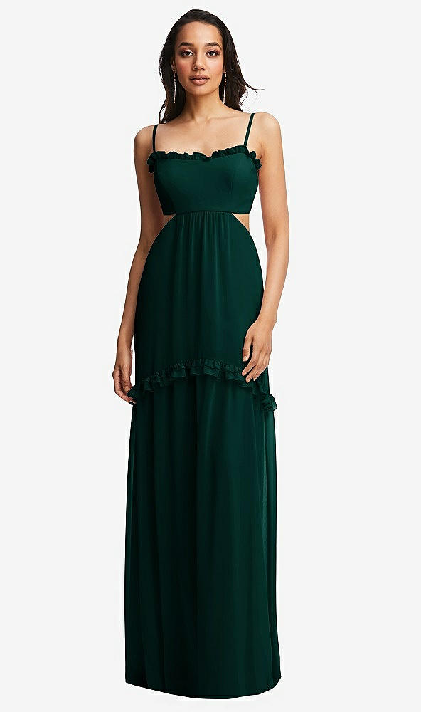 Ruffle-Trimmed Cutout Tie-Back Maxi Dress with Tiered Skirt in Evergreen
