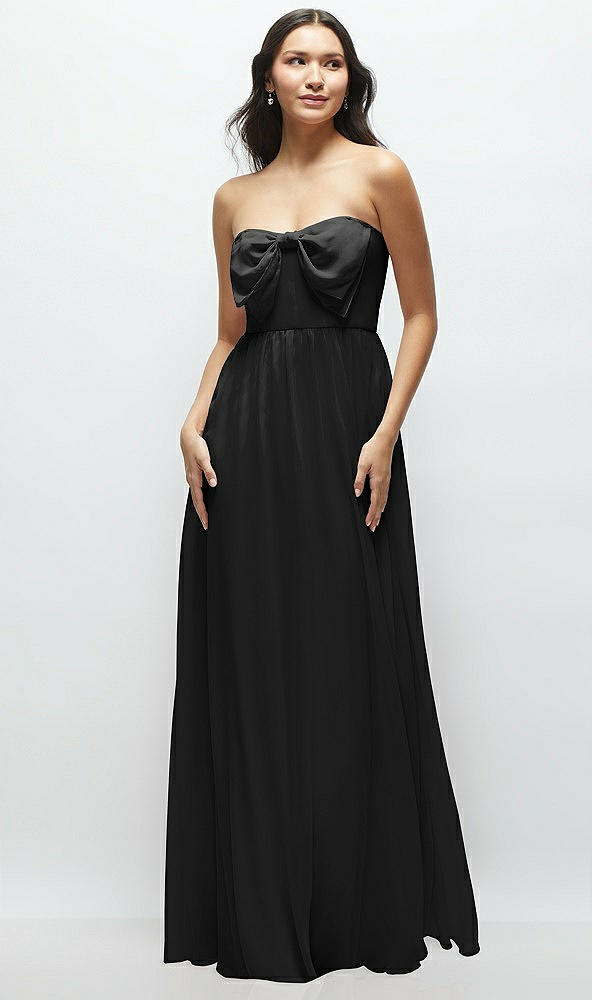 Strapless Chiffon Maxi Dress with Oversized Bow Bodice in Black