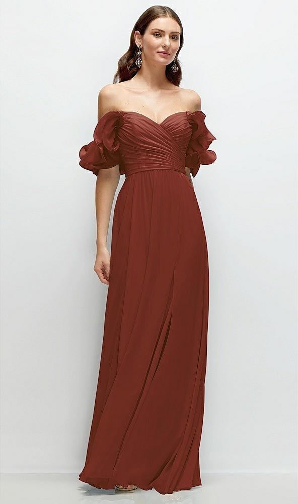 Dramatic Ruffle Edge Strap Chiffon Maxi Dress in Auburn Moon