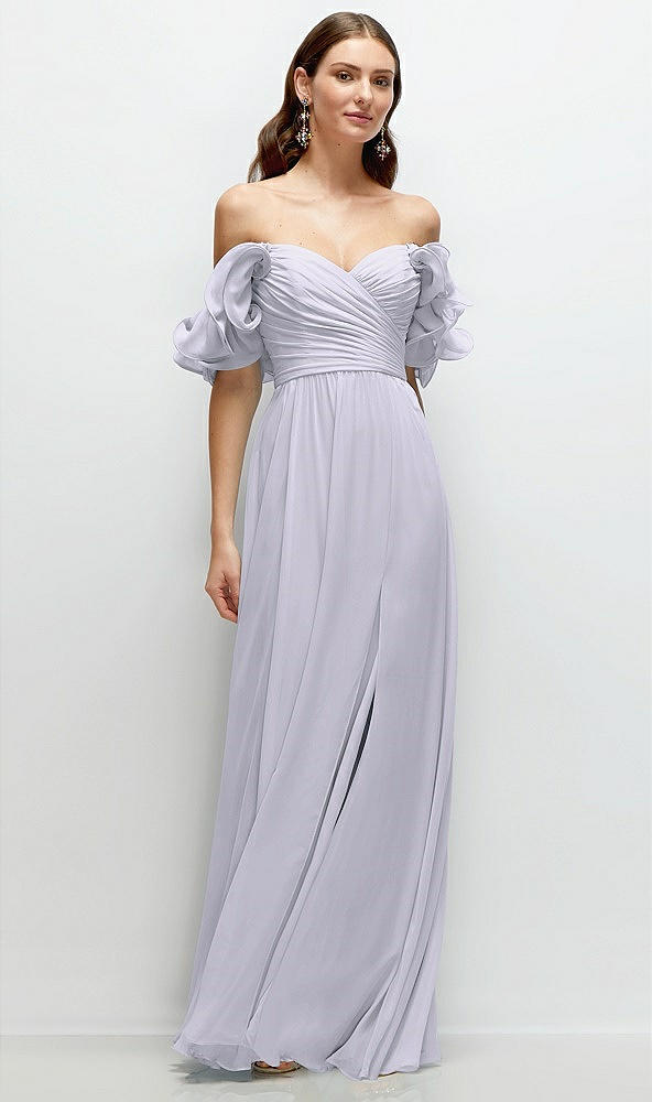Dramatic Ruffle Edge Strap Chiffon Maxi Dress in Silver Dove