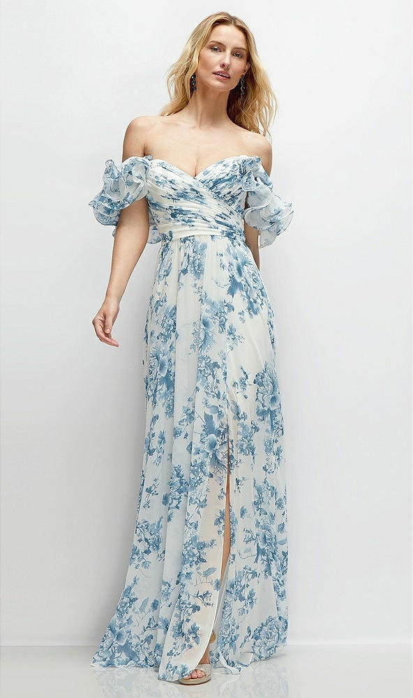 Dramatic Ruffle Edge Strap Chiffon Maxi Dress in Cottage Rose Dusk Blue