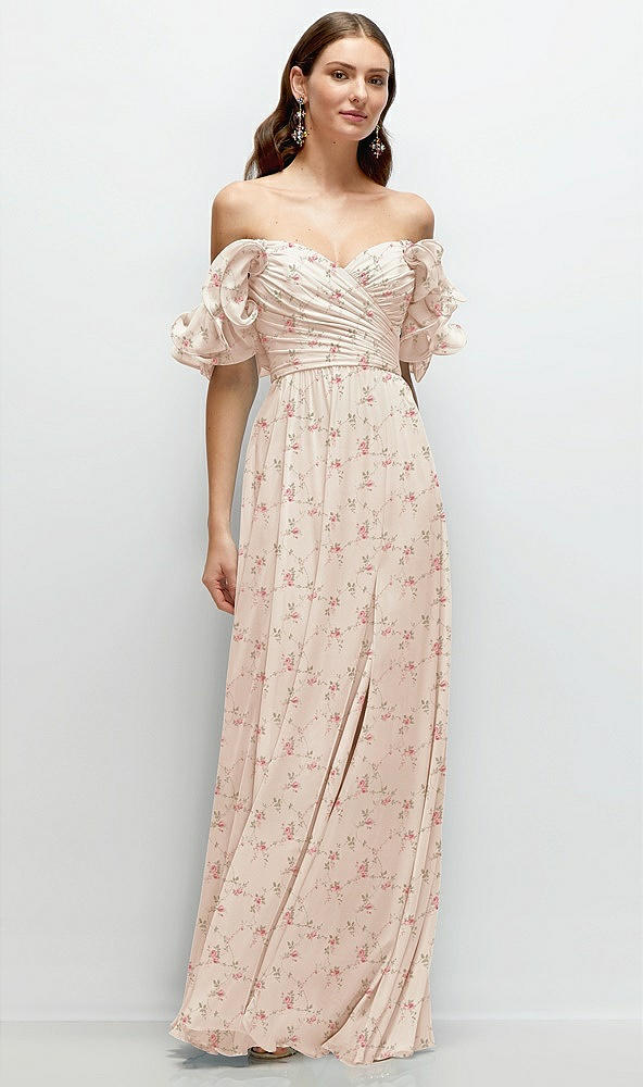 Dramatic Ruffle Edge Strap Chiffon Maxi Dress in Coquette Floral Print