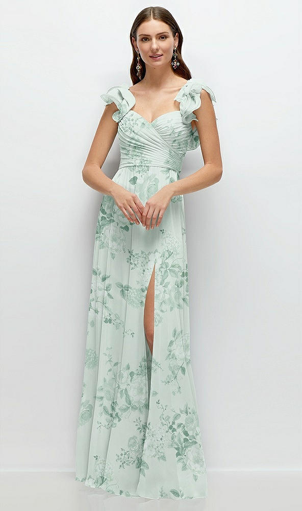 Dramatic Ruffle Edge Strap Chiffon Maxi Dress in Mint Green Floral