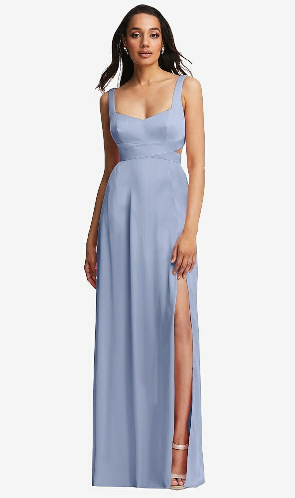 Open Neck Cross Bodice Cutout Maxi Dress with Front Slit in Sky Blue