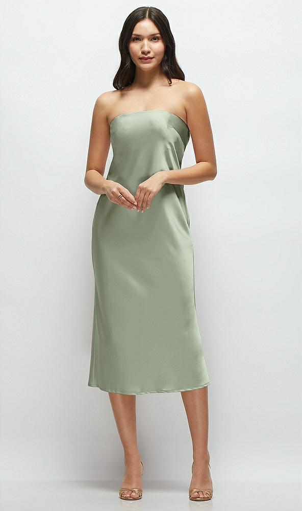 Strapless Midi Bias Column Dress with Peek-a-Boo Corset Back in Sage