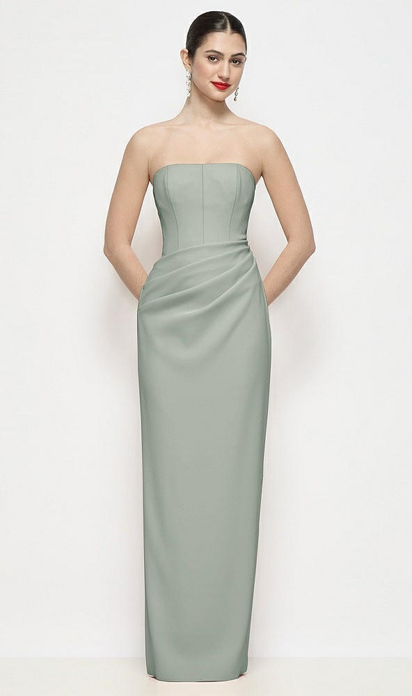 Strapless Asymmertical Drop Waist Corset Maxi Dress with Column Skirt in Willow Green