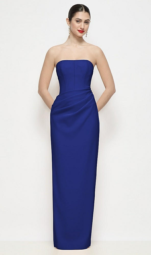 Strapless Asymmertical Drop Waist Corset Maxi Dress with Column Skirt in Cobalt Blue