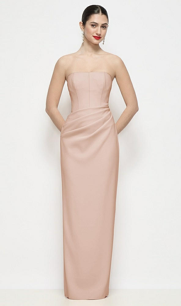 Strapless Asymmertical Drop Waist Corset Maxi Dress with Column Skirt in Cameo