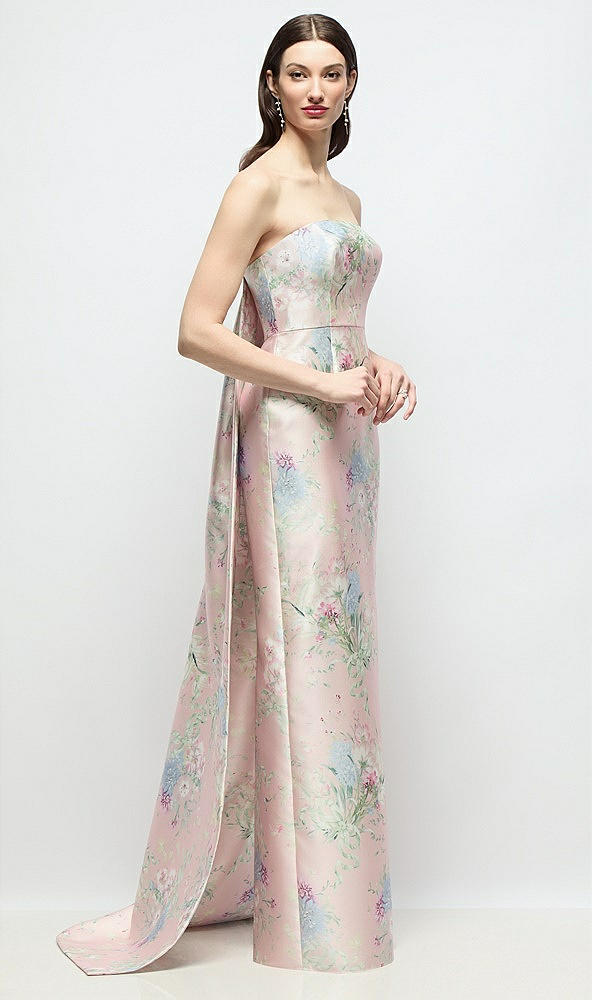 Strapless Esme Floral Satin Column Dress with Removable Watteau Train in Esme Floral