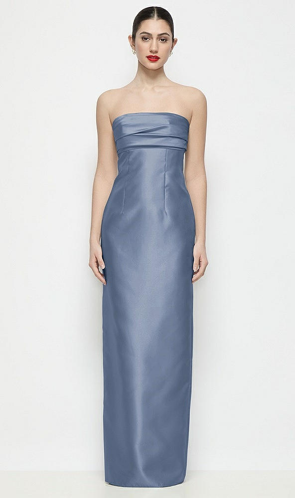 Strapless Pleated Empire Satin Column Maxi Dress in Larkspur Blue