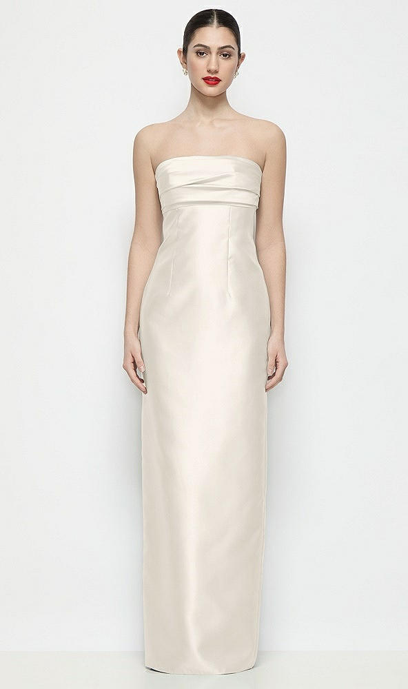Strapless Pleated Empire Satin Column Maxi Dress in Ivory