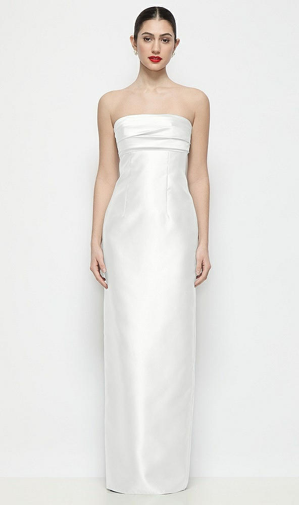 Strapless Pleated Empire Satin Column Maxi Dress in White