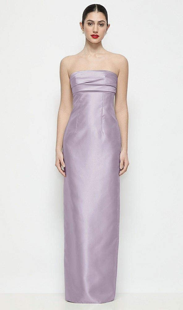 Strapless Pleated Empire Satin Column Maxi Dress in Lilac Haze