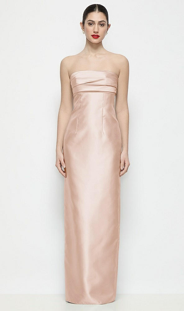 Strapless Pleated Empire Satin Column Maxi Dress in Cameo