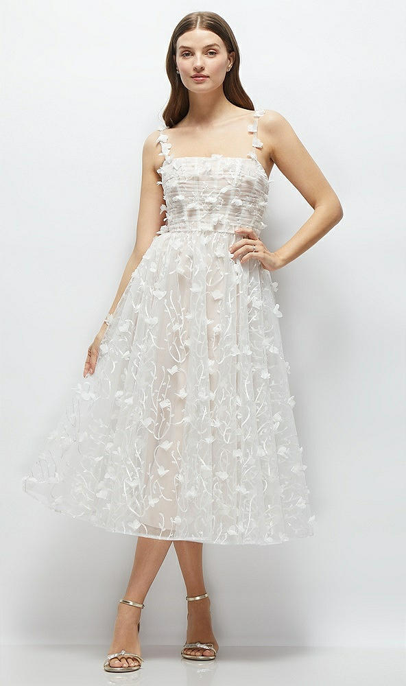 3D Floral Embroidered Little White Midi Dress with Nude Corset Underlay in Ivory