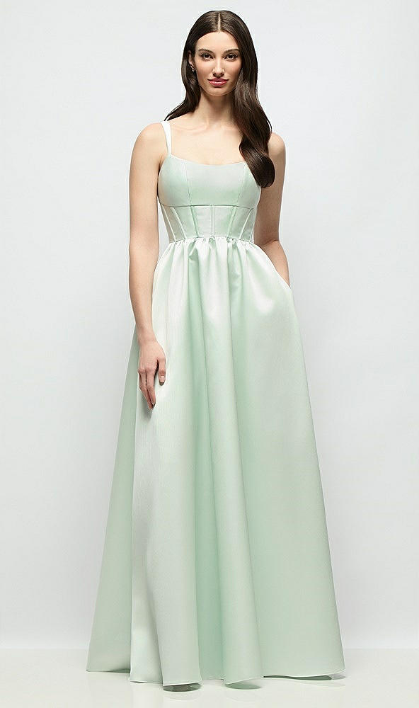 Scoop Neck Inset Corset Satin Maxi Dress with Pockets in Mint Green