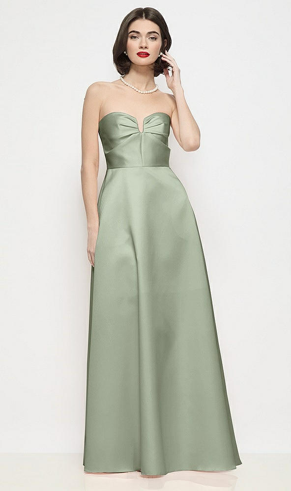 Strapless Pleated U-Wire Satin Maxi Dress with Semi Circle Skirt in Sage