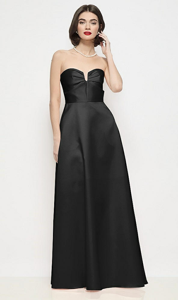 Strapless Pleated U-Wire Satin Maxi Dress with Semi Circle Skirt in Black