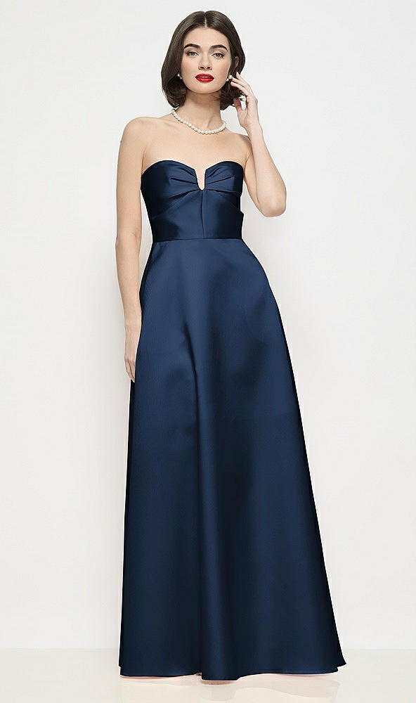 Strapless Pleated U-Wire Satin Maxi Dress with Semi Circle Skirt in Midnight Navy