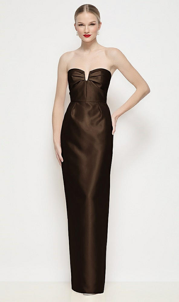 Strapless Pleated U-Wire Satin Column Maxi Dress in Espresso
