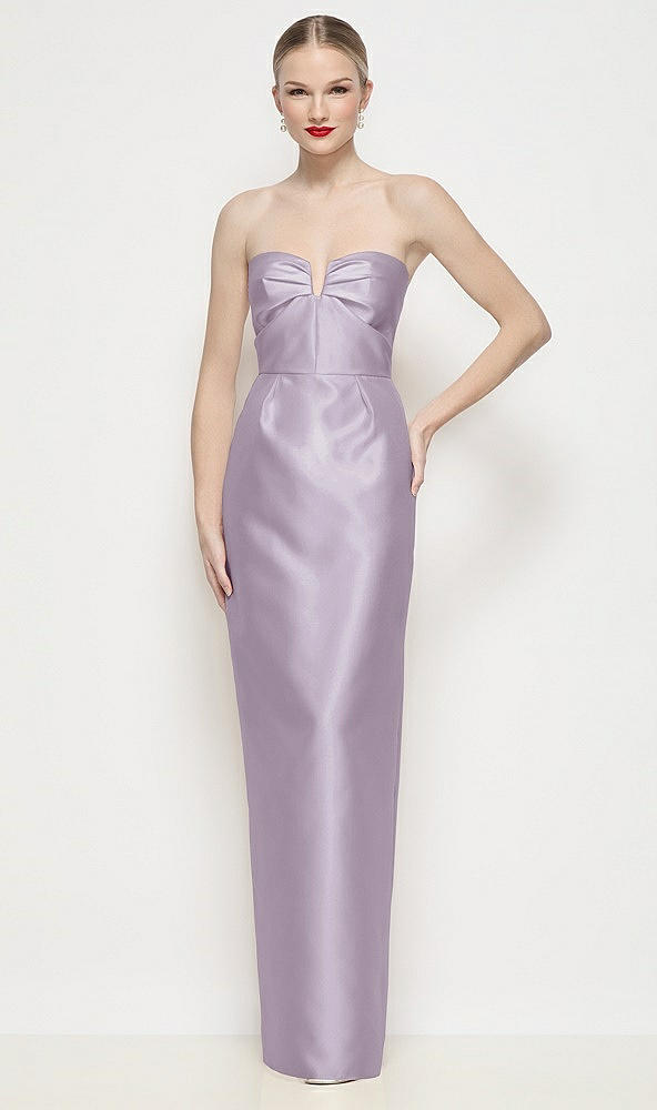Strapless Pleated U-Wire Satin Column Maxi Dress in Lilac Haze