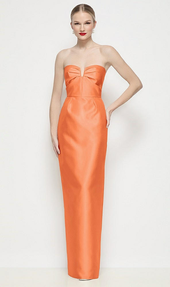 Strapless Pleated U-Wire Satin Column Maxi Dress in Portofino Orange