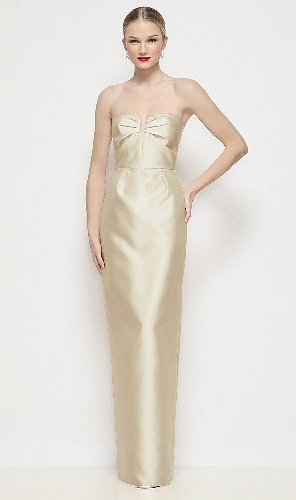 Strapless Pleated U-Wire Satin Column Maxi Dress in Champagne