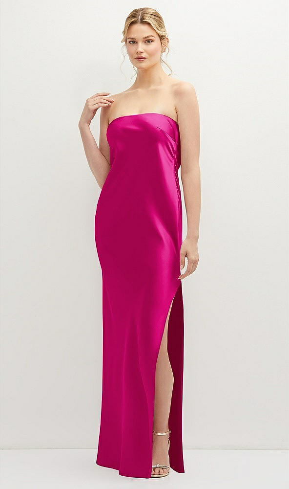 Strapless Pull-On Satin Column Dress with Side Seam Slit in Think Pink